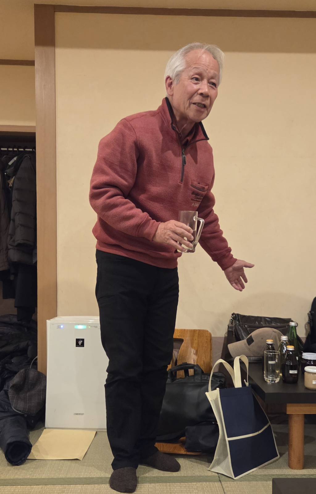 13名参加し26曲を何時も通り歌い終え、1月誕生祝いを川村健一さんにお渡しする。
