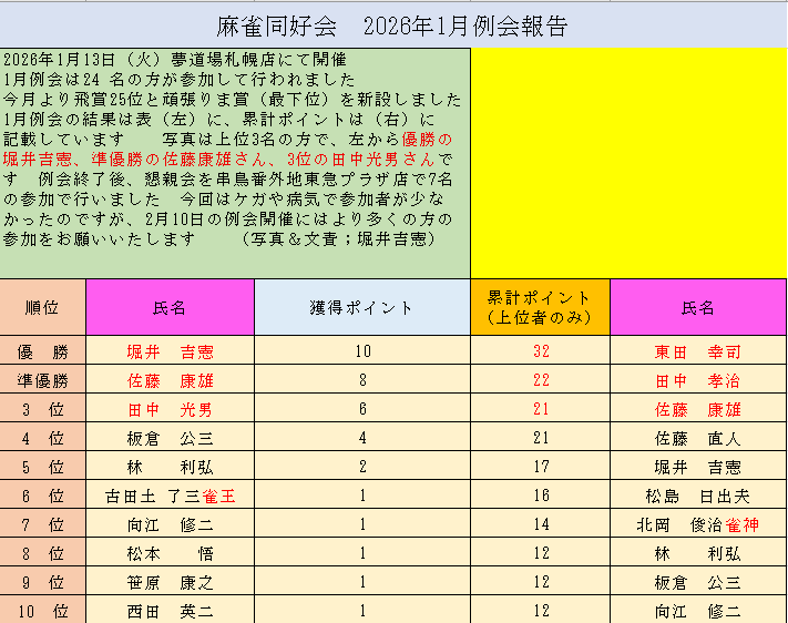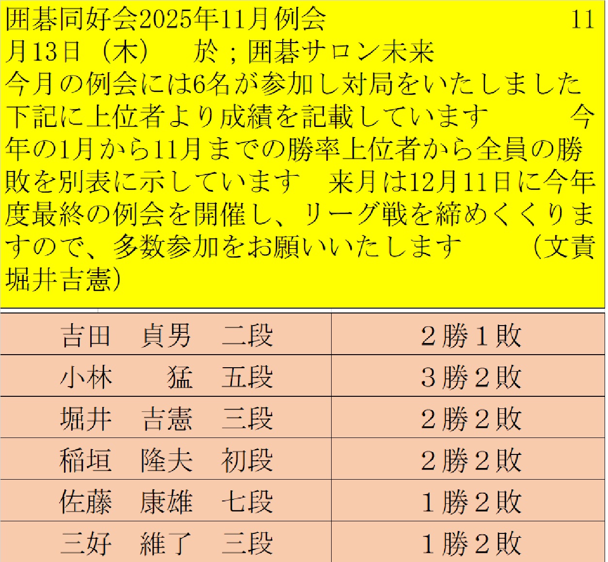 次回は11月14日(金)18時より納会となります。場所はお馴染みのグランド居酒屋富士 是非 ご出席ください。
