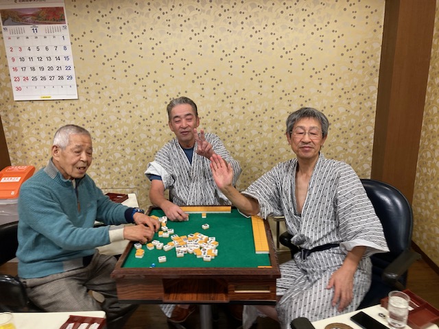 その後は大部屋でお酒を飲む方、麻雀を続ける方など各々が懇談の場を持っていました